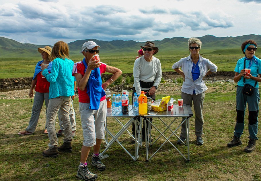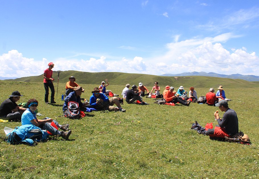 In the summertime, most of this route was delightful, with an easy path and sunny weather. Occasionally, tourists would jump into a river for a bath after a day’s trekking, or simply relax their bare feet on the soft grasslands. In the morning, after getting up in the tents at their camping sites, several French people would sing along even before breakfast. Every day, besides three picnic meals including Tibetan bread, sandwiches, coffee, milk tea, eggs and fruits, there were tea breaks which allowed them to pause a while, to enjoy the beautiful scenery around.